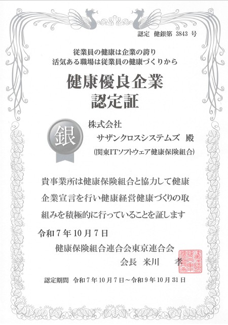 健康保険組合連合会東京連合会により、健康経営に関する一定の成果を収めた企業に与えられる認定です。